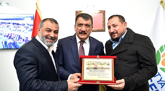 Şire Pazarı esnafları, dünya kayısı ticaret merkezi çalışmalarından dolayı Başkan Gürkan'a teşekkür plaketi takdim ettiler.