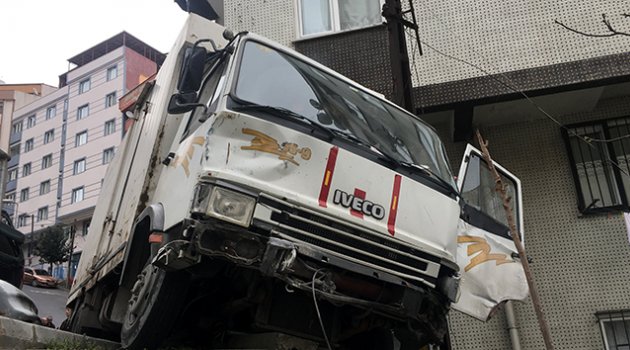 Şişli’de freni patlayan kamyonet yokuş aşağı kayarak 4 otomobile çarptıktan sona istinat duvarında askıda kaldı. Şans eseri olayda yaralanan olmazken kamyonet ve 4 otomobilde maddi hasar meydana geldi.