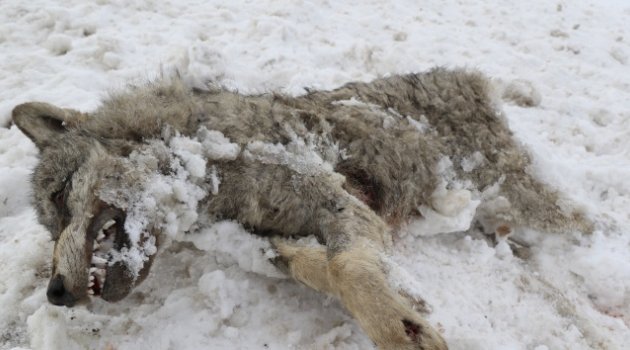 Sivas’in İmranli ilçesinde ayaza dayanamayan kurt yol kenarında donmuş olarak bulundu.