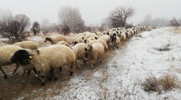 Sivas'ta ekili olan kar yağışı, küçükbaş hayvancılıkla uğraşanlara da zor anlar yaşatıyor.