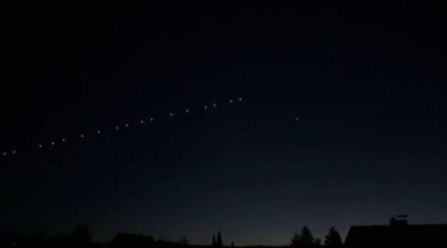 'Ufo' olduğu zannedilen ışıkların ABD’ye ait bir şirketin internet uydu takım yıldızları olduğu tahmin ediliyor.