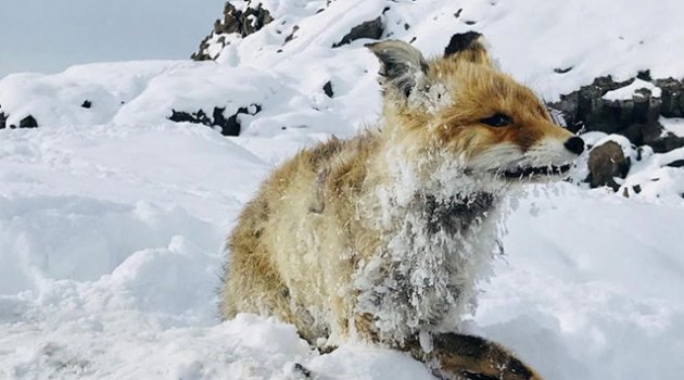 Van'ın Çaldıran ilçesinde etkili olan Sibirya soğukları, bir tilkinin telef olmasına neden oldu.
