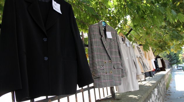 Asılan elbiselerle açık bir butiğe dönen sokaktaki onlarca kıyafet, kısa süreler içerisinde ihtiyaç sahipleri tarafından alındı.