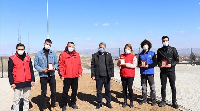 Hafta sonu sokağa çıkma kısıtlamalarında yiyecek bulmakta zorlanan sokak hayvanlarının yardımına koşarak beslemeye devam eden Malatya Gençlik ve Spor İl Müdürlüğü'ne bağlı Gençlik Merkezi üyesi gönüllü gençlere plaket verildi.