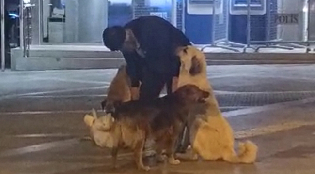 Malatya kent merkezi İnönü Caddesi üzerinde akşam saatlerinde yaşlı bir adamın sokak köpekleriyle ilgilendiği anlar bir vatandaş tarafından cep telefonuyla görüntülendi.