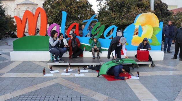 Malatya’da uyuşturucunun zararlarına dikkat çekmek için düzenlenen sokak tiyatrosu katılımcılardan yoğun ilgi gördü. Oyun vatandaşlar tarafından dakikalarca alkışlanırken, çok beğenildiği ifade edildi.
