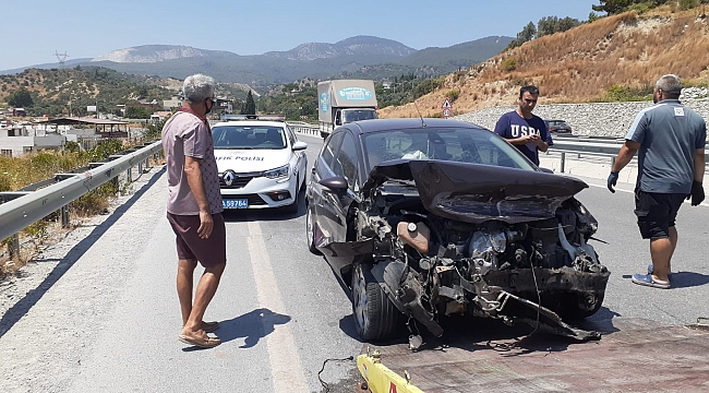 Aydın'ın Söke ilçesi Kuşadası çevreyolu üzerinde meydana gelen kazada virajı alamayan sürücü bariyerlere çarptı. Aracın ön tarafı hurdaya dönerken, sürücü kazadan şans eseri yara almadan kurtuldu.