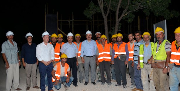 Belediye Başkanı Ahmet Çakır incelemeler sırasında, gece çalışan işçilere tatlı ikram ederek, kendileriyle bir süre sohbet etti.