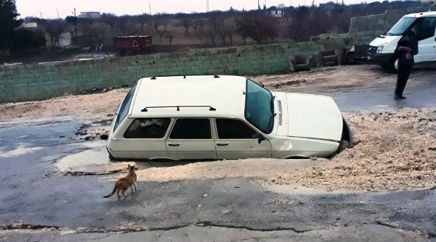 Şanlıurfa’da bir araç, seyir halindeyken içme suyu borusunun patlaması sonucu oluşan çukura düştü. Sürücü olayı yara almadan atlattı.
