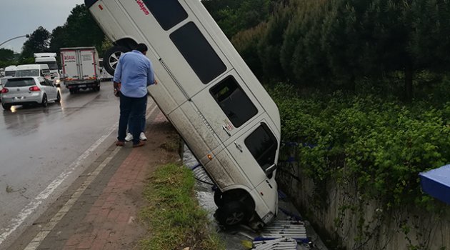 Kocaeli’nin Gebze ilçesinde yağmur sebebi ile kayganlaşan yolda kontrolden çıkan minibüsün su kanalına düşmesi sonucunda meydana gelen kazada sürücü burnu bile kanamadan kurtuldu.
