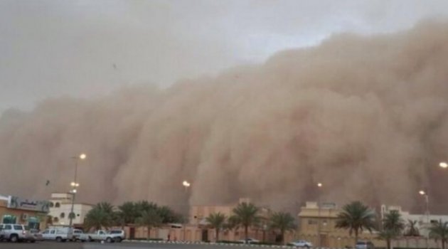Suudi Arabistan’ın başkenti Riyad’ı kum fırtınası vurdu. Şehirde hayatı felç eden yoğun toz bulutu nedeniyle insanlar dışarı çıkamazken görüş mesafesinin azalması trafiği durma noktasına getirdi.