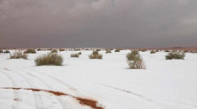 Suudi Arabistan'ın El Cevf bölgesinde hava sıcaklıklarının sıfırın altına düşmesi ile kar yağdı. Hava sıcaklığının eksi 3'e kadar düştüğü bölge beyaz örtüyle kaplandı.