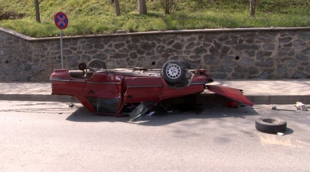 Görgü şahidi Onur Çaydan, "Araç sol şeritten geliyordu. Orta şeride geçerken öndeki araba yüzünden aniden fren yaptı, eski model araba olduğu fren takılı kaldı. Tabelaya vurduktan sonra araba takla atarak bu tarafa doğru geldi. Araç sürücüsü içinden sağ çıktı çok şükür. Kapıyı açtıktan sonra kendisi dışarı çıktı" dedi.