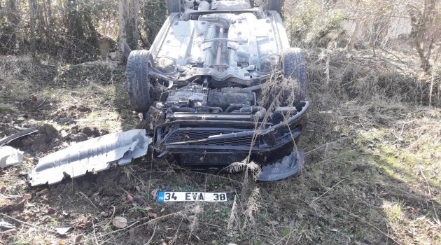 Takla atan otomobil ağaçlık alana uçtu: 2 yaralı