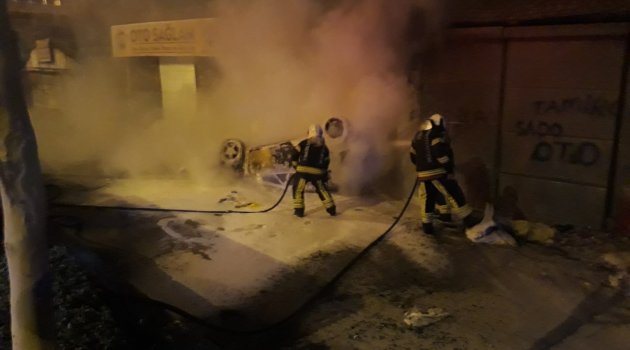 Takla atan otomobil alev alev yandı
