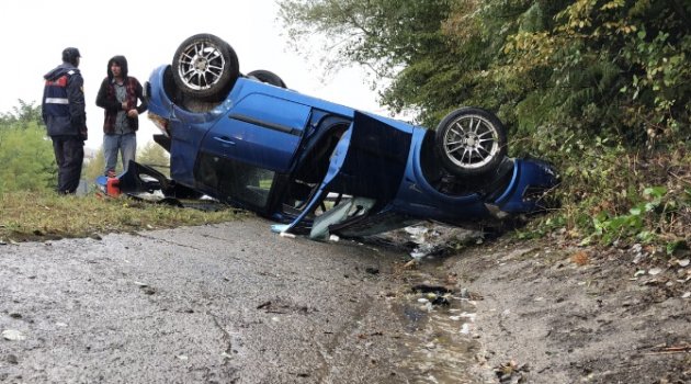 Takla atan otomobilden burunları bile kanamadan çıktılar