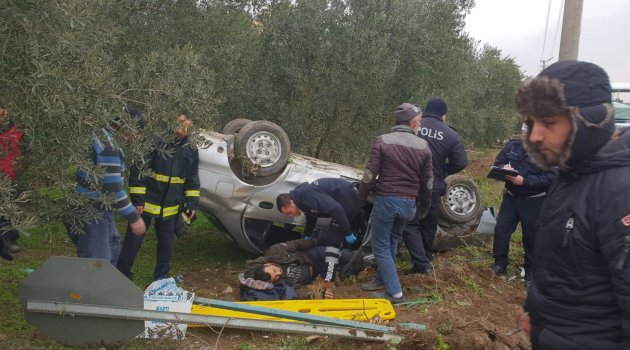 Otomobil zeytin tarlasına uçup ters döndü. Sanayi esnafının müdahale ettiği kazada sürücü Recep A. ve yanında oturan Muzaffer K. hafif yaralandı. 112 ekiplerinin müdahale ettiği yaralılar, İznik Devlet Hastanesi'nde tedavi altına alındı. Polis kazayla ilgili tahkikat başlattı.