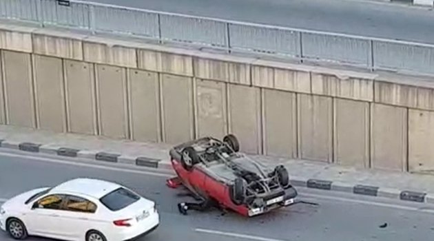 Manisa'nın Yunusemre ilçesinde direksiyon hakimiyetini kaybeden sürücü takla atan aracından sürünerek çıktı.