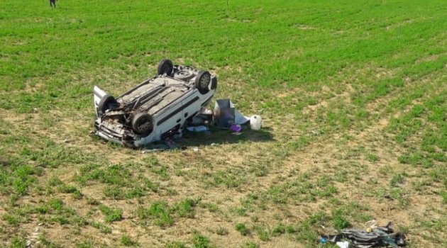 Taklalar atan araç tarlaya düştü: 2 yaralı