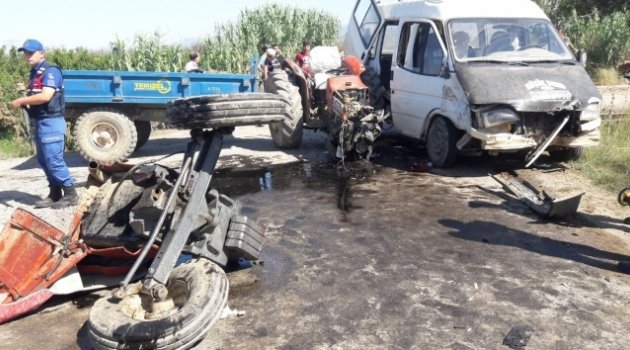 Turgutlu'da tarım işçilerini taşıyan minibüs ile traktör çarpıştı. Kazada aralarında Suriyeli uyruklu isimlerinde olduğu 12 kişi yaralandı.