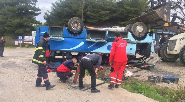 Tarım işçilerini taşıyan otobüs devrildi: 1 ölü, 12 yaralı