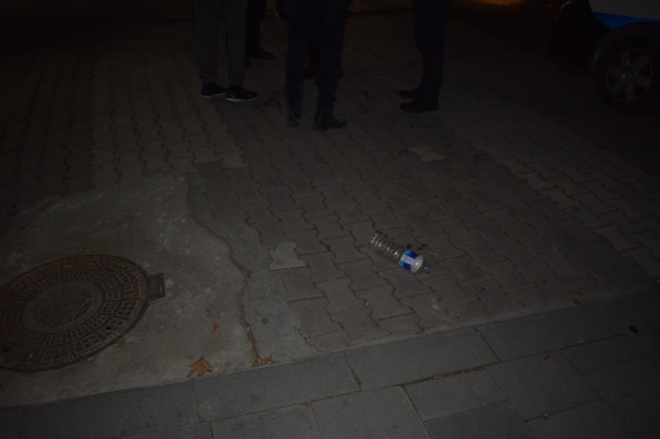 Bölgede inceleme yapan ekipler içerisinde benzin kalıntıları olan 3 litrelik bir bidonla bir adet pet şişe buldu.
