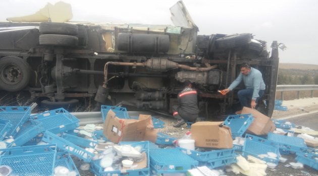 Eskişehir'de tatlı yüklü kamyonun yola devrilmesi sonucu 1 kişi hafif yaralandı.