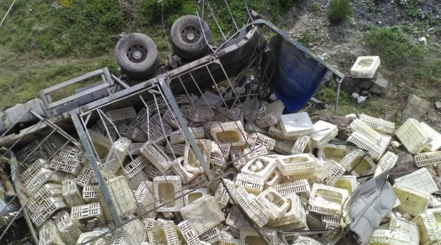 Sakarya’nın Geyve ilçesinde tavuk yüklü kamyon uçuruma devrildi.