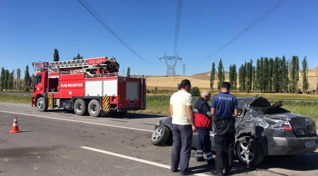 Sivas’ın Ulaş ilçesinde tekeri patlayan otomobil takla atarak 15 metre sürüklendi. Kazada otomobilde bulunan 3 kişi yaralandı.