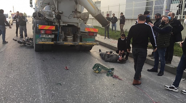Kaza, Çerkezköy Organize Sanayi Bölgesi’nde meydana geldi. Edinilen bilgilere göre, 2 motosikletli genç ana caddeye çıktıkları anda önlerinde seyreden 59 ABN 781 plakalı Ahmet Nişancı yönetimindeki beton mikserine çarptı. Kazada motosiklet sürücüsü Ramazan Irmak ağır yaralandı.