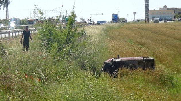 Telefona bakmak isterken buğday tarlasına uçtu