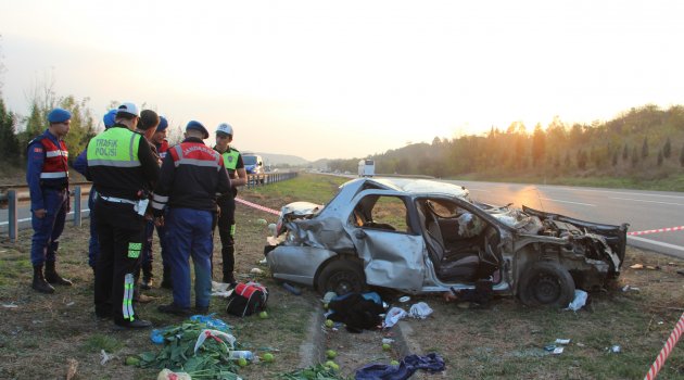 Sakarya TEM Otoyolu Hendek mevkiinde meydana gelen trafik kazasında otomobil bariyerleri parçalayarak takla attı. Hurda yığını haline gelen otomobilde bulunanlardan 1'i ağır 3 kişi yaralandı.