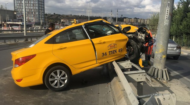 Küçükçekmece’de içerisinde yolcu bulunan ticari taksi, bariyerlere çarparak durabildi.