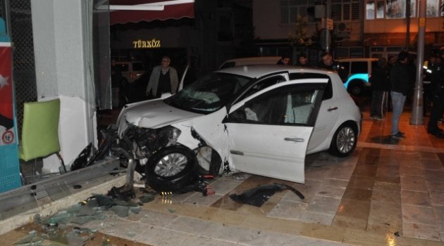 Ticari taksiye çarpan otomobil eczaneye girdi: 2 yaralı