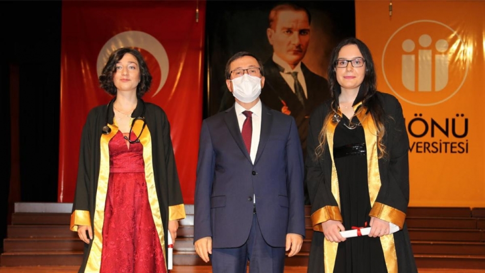 Dönem birincileri Merve Ünal ve Tuğçe Irmak’ın diplomaları Rektör Prof. Dr. Ahmet Kızılay, bölüm ikincisi Ozan Güven’e diploması Rektör Yardımcısı Prof. Dr. Nusret Akpolat, bölüm üçüncüleri Dilfiruz Büşra Gürsoy ve Sümeyye Korkusuz’a diplomaları Dekan Prof. Dr. Mahmut Durmuş, bölüm dördüncüleri Esma Fırat ve Çiğdem Karagöz’e diplomaları Başhekim Prof. Dr. Ali Beytur, bölüm beşincileri Aybüke Ahsen Helvacı ve Ceren Yıldırım’a diplomaları Malatya Tabip Odası Başkanı Doç. Dr. Erol Karaaslan tarafından verildi.