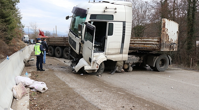 Tır Abant yolunu kapattı: 2 yaralı