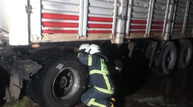 Tır'ın lastiği seyir halindeyken yanmaya başladı