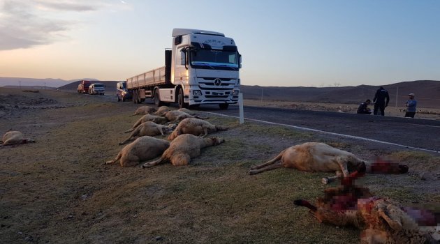 Kayseri’de tırın yolun karşısına geçen koyunların arasına dalması sonucu 18 hayvan telef olurken, 31 hayvan da yaralandı.
