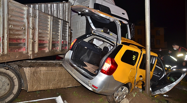 Tır ticari taksiye çarptı: 3 yaralı