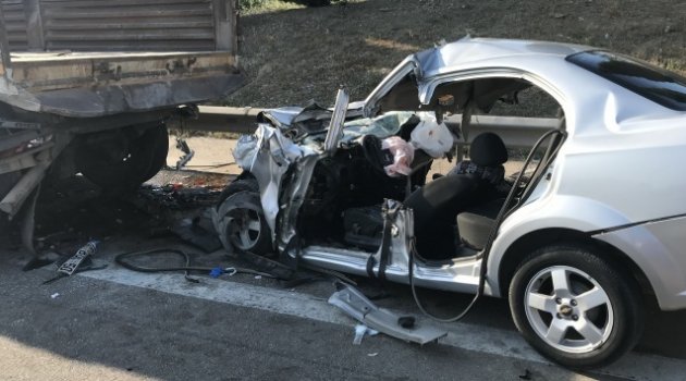TIR'a çarpan otomobilde korkunç ölüm