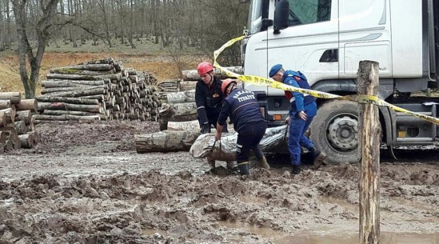 Sakarya'nın Hendek ilçesinde dorsesine yükleme yapılan tırdan yuvarlanan tomruğun üzerine düşmesi sonucu şoför yaşamını yitirdi.