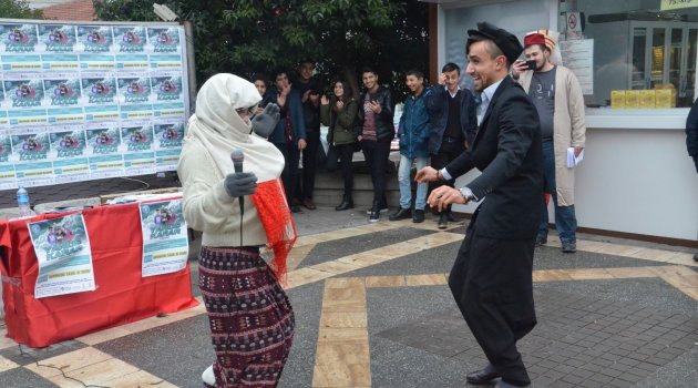Kentin en işlek meydanlarından biri olan Soykan Meydanında stant açan tiyatro oyuncuları, sergiledikleri oyun ile renkli görüntüler yaşattı. 30 Aralık Pazar günü Halk Eğitim Merkezinde yapılacak oyuna vatandaşları davet eden oyuncuların kısa gösterisi ise ilgiyle izlendi.