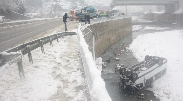 Kaza bugün saat 12.30 sıralarında meydana geldi. Trabzon'dan Gümüşhane istikametine gitmekte olan İbrahim Karabulut yönetimindeki 29 M 194 plakalı yolcu minibüsü, Maçka ilçesi Çatak mevkiinde önünde seyretmekte olan 34 BIV 468 plakalı aracı sollamaya çalışırken kontrolünü kaybederek önce önündeki araca ardından da kar yağışı nedeniyle kayganlaşan yoldan çıkarak korkulukları aşıp dereye uçtu. Kazada ilk belirlemelere göre 15 kişi yaralanırken, yaralılar ambulanslarla Trabzon'daki çeşitli hastanelerde sevk edilerek tedavi altına alındı.