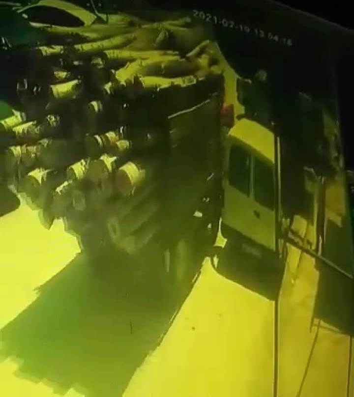 Malatya'da yolda yürürken tomruk yüklü traktörün çarptığı bir kişi, traktörle ile park halindeki bir araç arasında sıkışarak yaralandı. Kaza anı bir iş yerinin güvenlik kamerasına yansıdı.