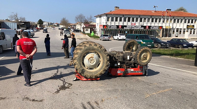Sakarya’nın Karasu ilçesinde sanayi sitesi girişinde otomobil ile çarpışan traktör takla atarak ters döndü. Kazada sürücüsü yaralandı.