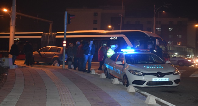 Edinilen bilgilere göre; İnönü Üniversitesi istikametin gelerek kent merkezi istikametine seyir halinde olan S.A. idaresindeki 44 AG 013 plakalı trambüs kavşak içerisinde seyir halinde olan Z.D. yönetimindeki 44 LU 501 plakalı otomobile çarptı.Çarpmanın etkisiyle savrulan otomobil kaldırıma çıkarak durabilirken, hattan çıkan trambüs yolda kaldı.