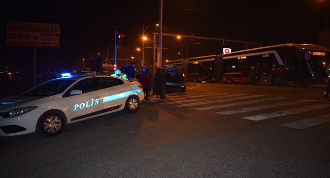 Trambüs ile otomobil çarpıştı: 2 yaralı