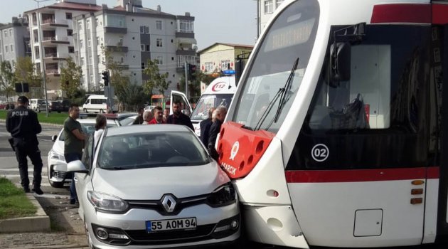 Samsun'da tramvayın hemzemin geçidinde otomobile çarpması sonucu otomobil sürücüsü yaralandı.