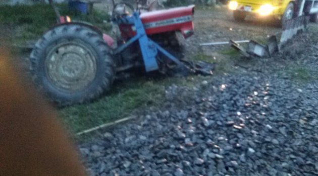 Trenin altında parçalara ayrılan traktörün sürücüsü yara almadan kurtuldu