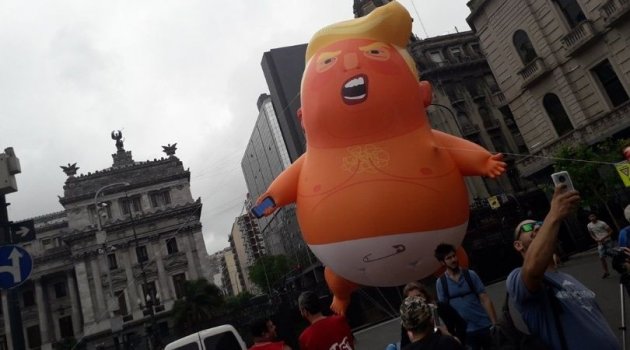 G20 karşıtı ilk protesto Arjantin Kongresi önünde yapıldı. Protesto gösterilerine dev “Bebek Trump” balonu damga vurdu. Zirveyi protesto etmek için ülke içinden ve yurt dışından gelen protestocu gruplar hedeflerine ABD Başkanı Donald Trump’ı koydular.